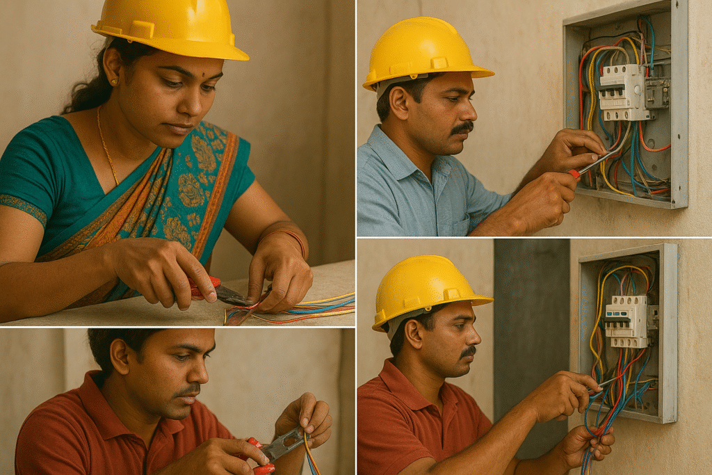 We are conducting an Electrician course to equip students with essential electrical skills for practical use in homes and industries. The course covers wiring, installation, maintenance, and safety measures in electrical systems. Students will gain hands-on experience in handling tools and working with electrical circuits. This training prepares them for career opportunities in construction, repair, and service sectors. The course also encourages self-employment, enabling learners to start their own work as professional electricians.